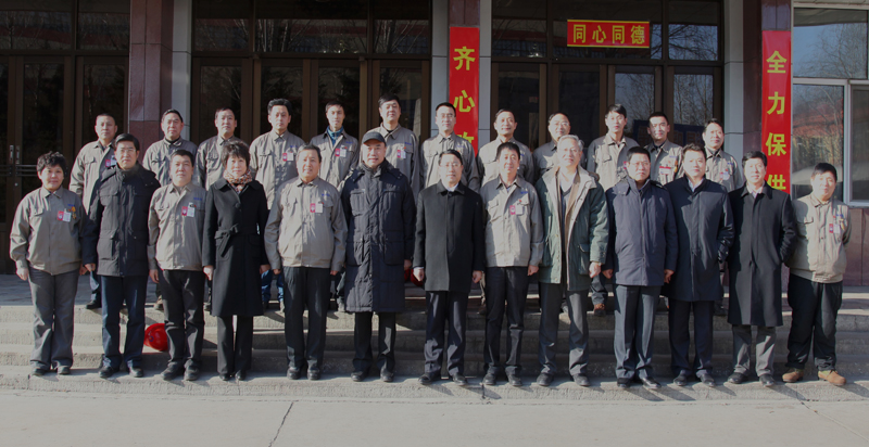 副省長劉國中、市委書記張晶川等領(lǐng)導(dǎo)與公司勞動模范和班子成員合影