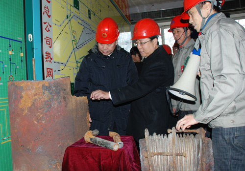 2011年12月29日上午,省委常委、常務(wù)副省長劉國中來到牡丹江熱電有限公司,檢查指導(dǎo)城市冬季供熱工作,看望熱電員工。