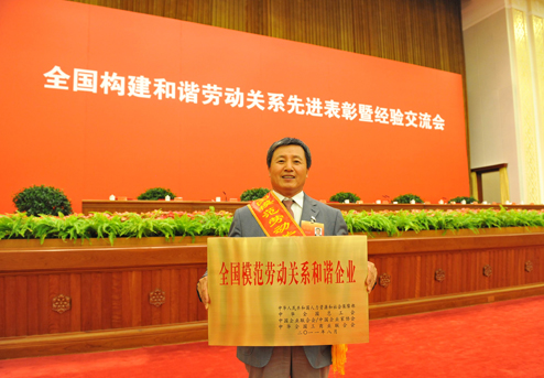 “全國構(gòu)建和諧勞動關(guān)系先進(jìn)表彰暨經(jīng)驗(yàn)交流會”于2011年8月15日至16日在北京隆重舉行。中共中央政治局常委、中央書記處書記、國家副主席習(xí)近平出席會議并講話。這次會議,是由全國總工會、人力資源和社會保障部、全國工商聯(lián)、中國企業(yè)聯(lián)合會、中央宣傳部聯(lián)合召開的。會議表彰了全國模范勞動關(guān)系和諧企業(yè)和工業(yè)園區(qū),我公司獲得“全國模范勞動關(guān)系和諧企業(yè)”榮譽(yù)。